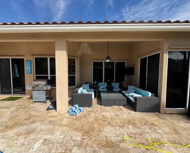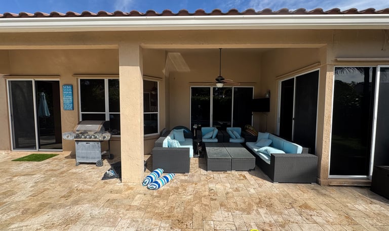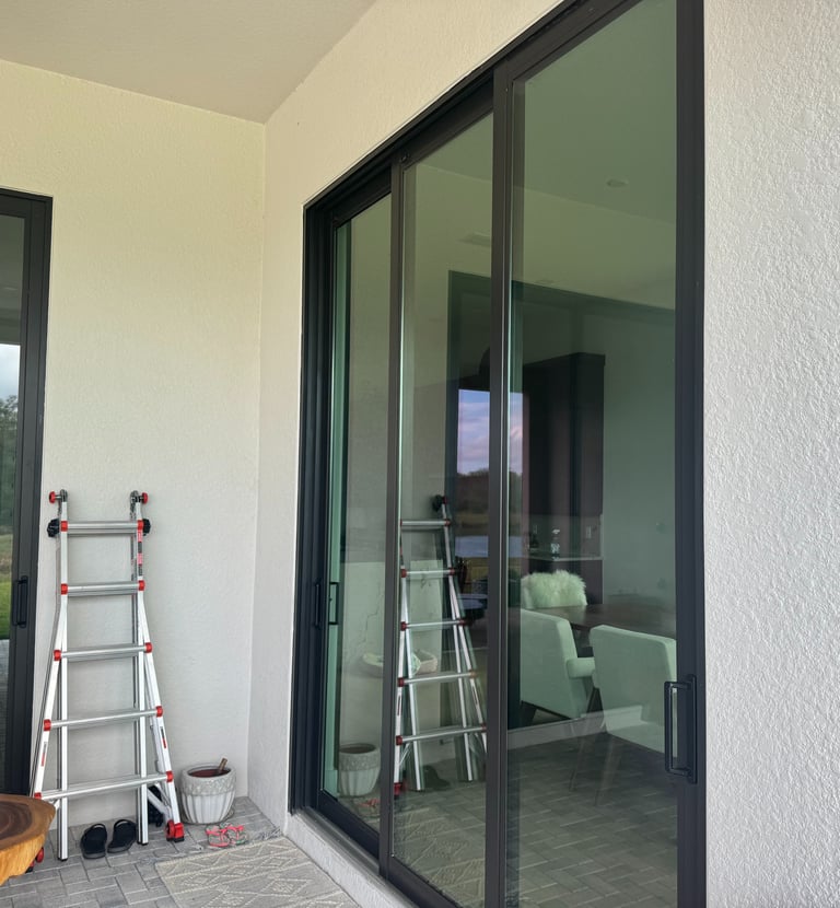 These patio glass panels gleam after a thorough wash, letting in warm sunlight and enhancing the view of the Beautiful backyard set up.